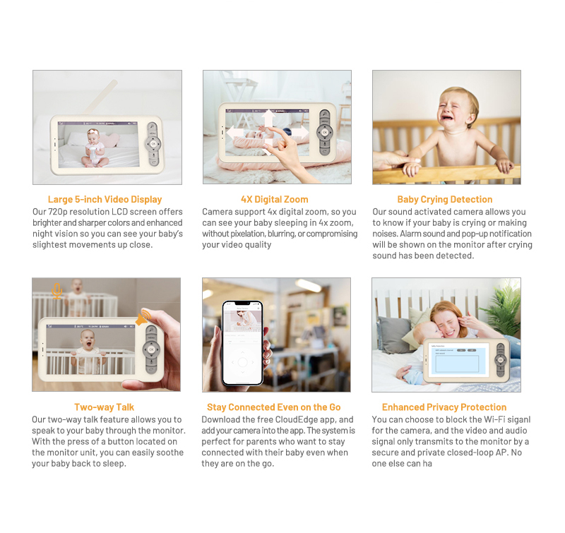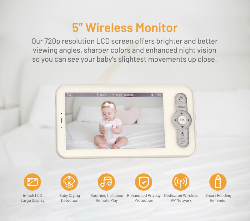 5 Inch HD 1080P wifi Baby Monitor Two-Way Audio Baby Phone Night Vision Baby Camera with App Control 900 Feet Range