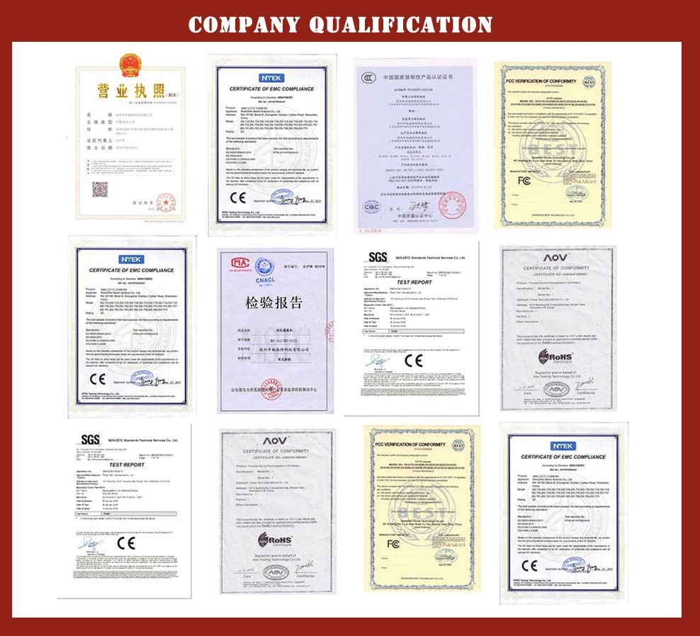| Certification | ISO9001, ISO9002, CE, EMC, FCC, GS, MSDS, REACH, RoHS, ULm, etc. |