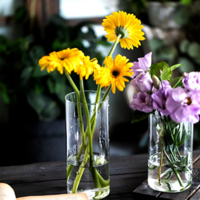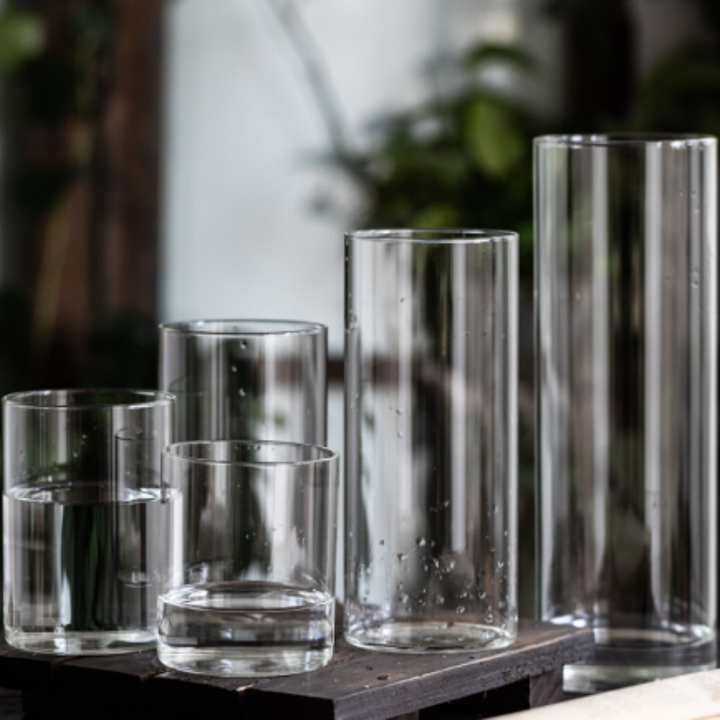 Nordic Vintage Glass Cylindrical Vase Decoration Home Office Wedding Centerpieces in Various Sizes