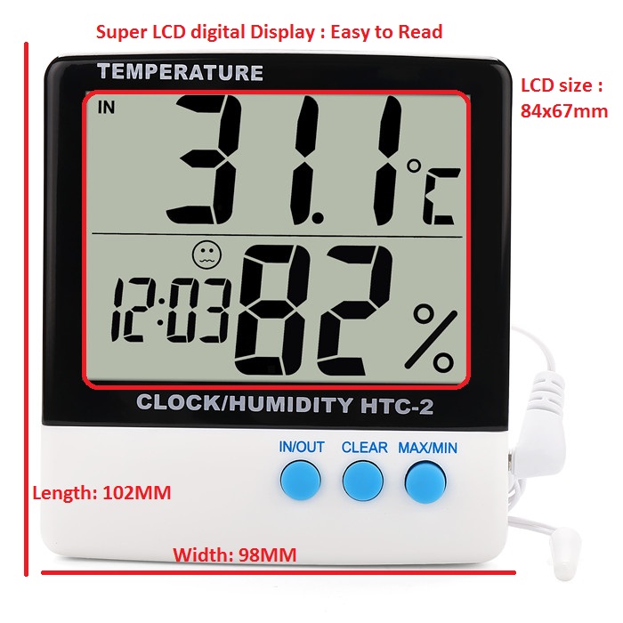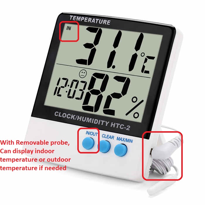 Hydroponic Garden Hygrometer Thermometer Max Minimum Indoor Outdoor Digital Clock Humidity and Thermometer