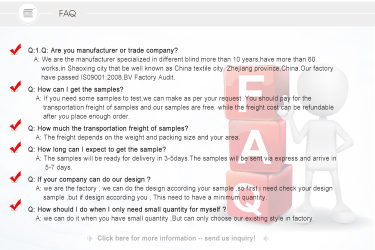 Packaging Details: Each blind is packed in a plastic box + pvc bag + 1cm thick carton Origin: China (Mainland), Sichuan, China width: 200/220/250 MOQ: 1 style: Venetian Package preview: model: hehua-001 occasion: baptism color: customer request sample: usable Applicable window type: french windows..... -