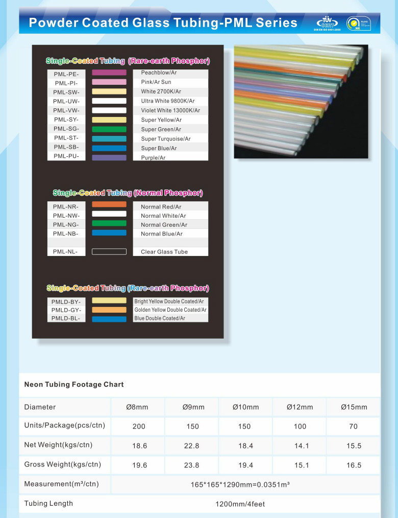 Gas type: neon Supply capacity: 1000 pieces per week length: 1200-1600mm Operation Manual: Yes Packaging Details: Standard export packaging brand: Hua Nuo Ellipticity: 0.3 coating: single/double Diameter: 6-25mm color: type payment terms: L/C, Western Union, D/P, D/A, T/T, MoneyGram Material...... -