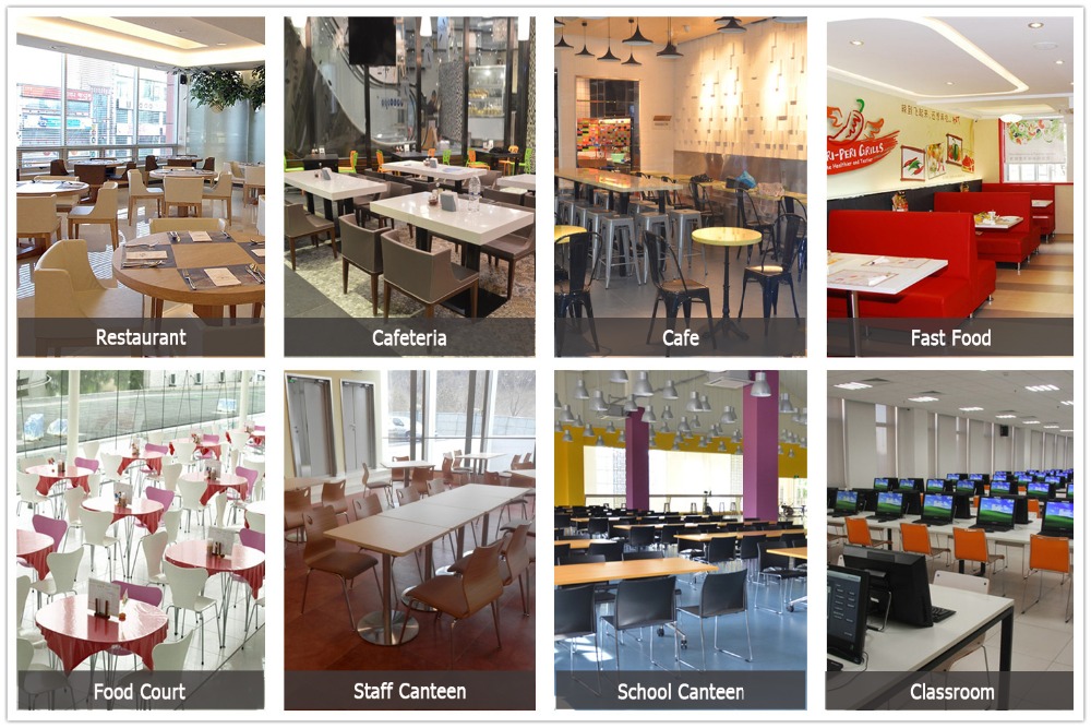 E: Widely used in restaurants, cafes, bars, hotels, and public places