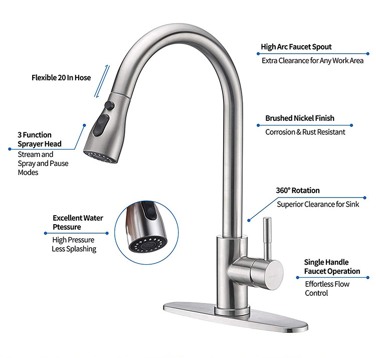 JW304 Kitchen Faucet Pull Out Kitchen Sink Mixer Faucet Stream Spray Head Mixer Kitchen Faucet Pull Out