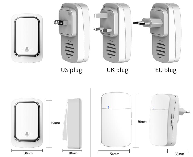 volume: 4 levels of volume adjustable Origin: Guangdong, China Brand name: Smart Swire Product name: EU/US/UK Plug 38 Ring Tone Waterproof Wireless Doorbell model: AP-D27 After-sales service: Returns and exchanges, free spare parts Battery: 12V 23A application: apartment Material: ABS power supply:.... -