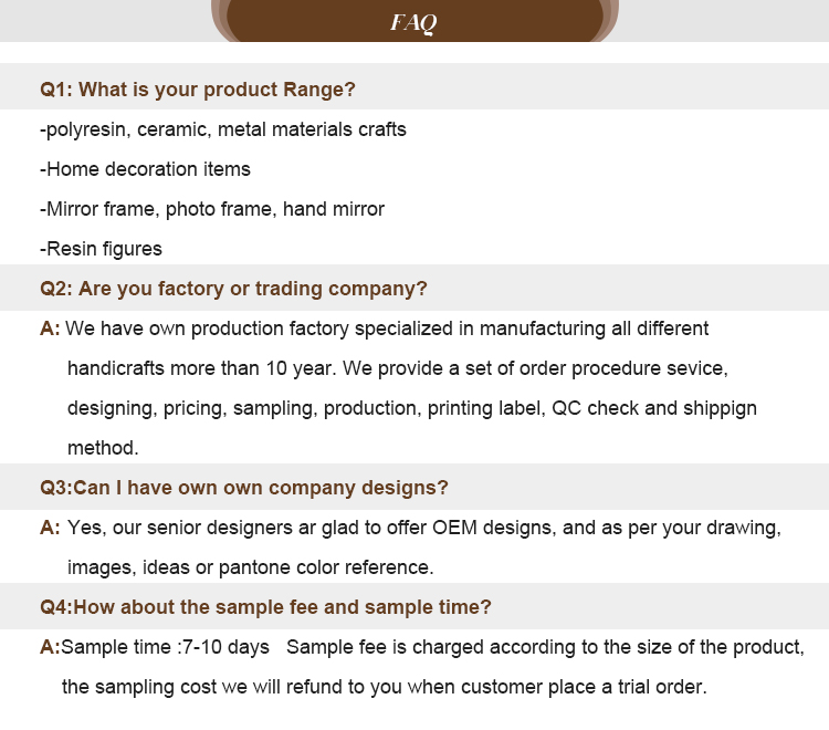 | type: | Home Decor Sculpture, Photo Frame | payment terms: | L/C, D/A, D/P, T/T, Western Union, MoneyGram, Paypal |