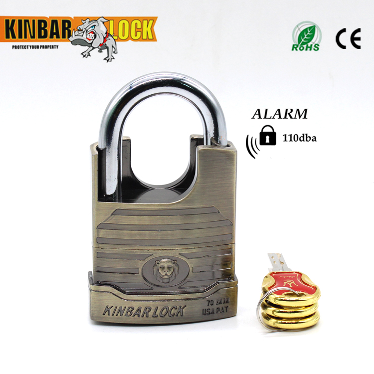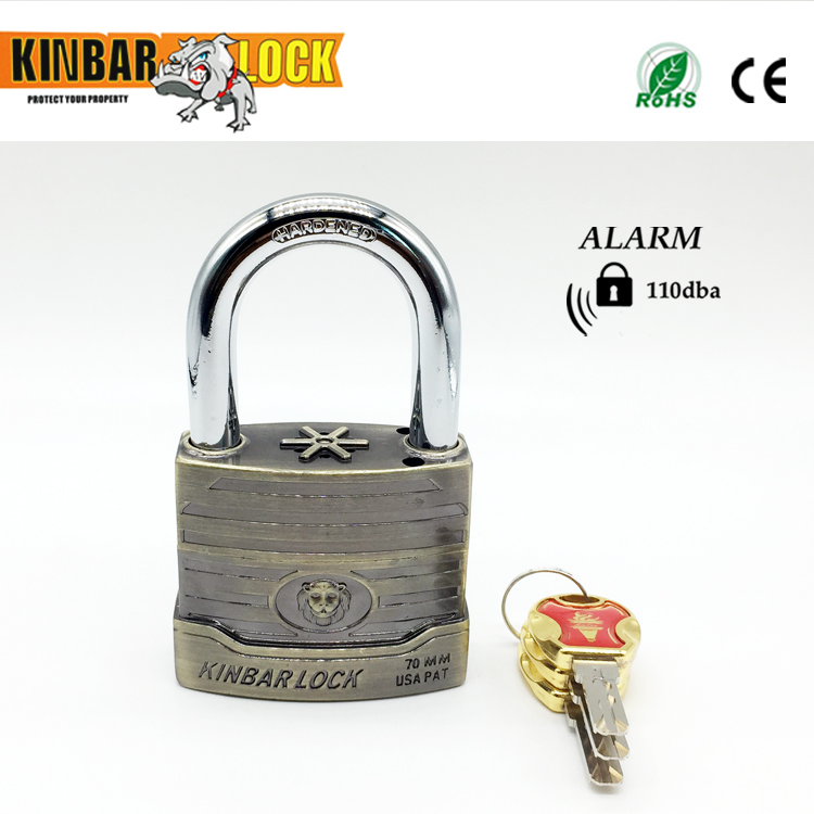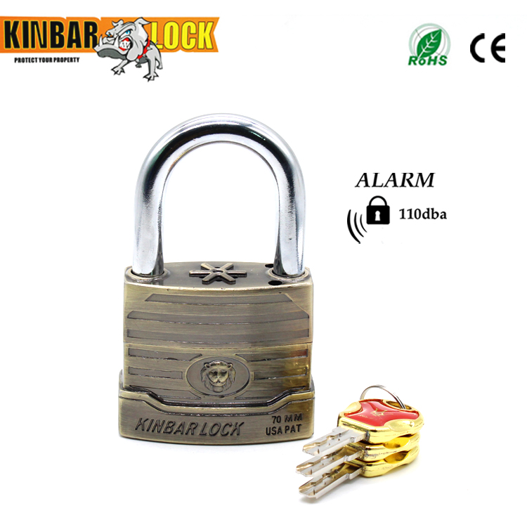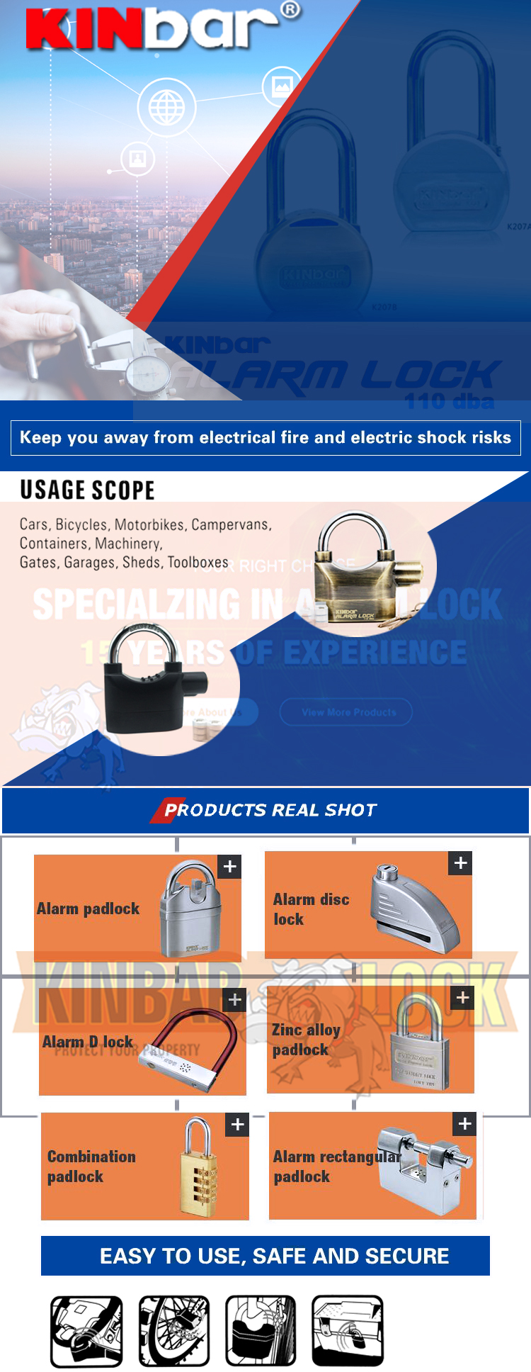 A2: We have zinc alloy, aluminum alloy, brass and steel materials for body locks. The locking hook is made of heat-hardened stainless steel and is anti-rotation. We also tested the alarm lock’s alarm sound and fall resistance. We have electroplated or plastic sprayed or cast solid brass or cast solid aluminum or iron lock bodies nickel plated. Our alarm lock has an alarm device inside, which uses the battery to provide power to the lock to alarm.