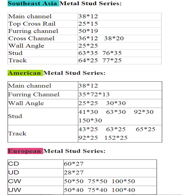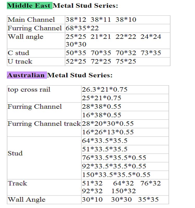 2x4 Metal Studs Drywall Profile C-Shaped Stud Channels Plaster Channel Ceiling Brackets