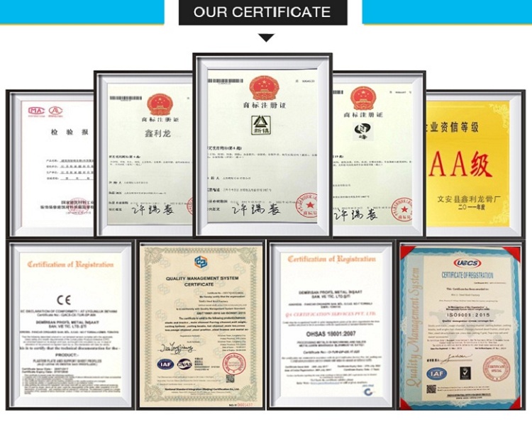 Xinli steel keelfactory,Founded in 2000, it has20With a factory history of 10 years, it is located in Wen'an Town, 100 kilometers away from National Highway 106, close to Jinbao Expressway and National Highway 112, with superior geographical location and convenient transportation. The company has an annual production capacity of more than 20,000 tons, specializing in the production of light steel keels, plywood keels, triangular keels, and alum steel keels. It covers an area of 10,000 square meters and has more than 50 employees. After many influences, we become the biggest keel in the industry. For the record, all products are sold to most parts of China and exported to UK/USA/California/Russia and Southeast Asia, we have passed many certifications, such as Reach test report, SGS test report, P6 test report, ISO9001 and CE. The company produces a variety of products with excellent quality, reasonable design and continuous development. She will provide you with high-quality products and the best service based on the principle of "quality first, best frame". Sincerely have the opportunity to cooperate with all customers.