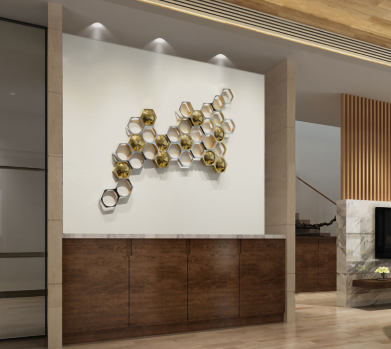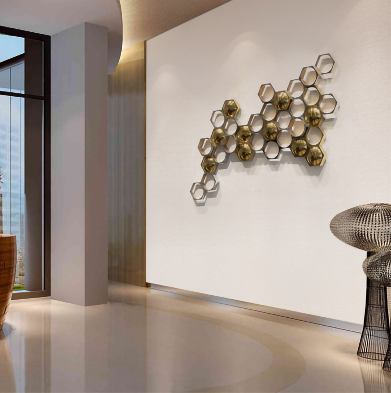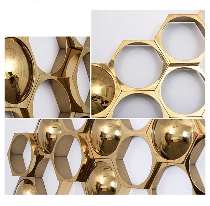Dali stainless steel honeycomb rose gold gold decorative metal wall art hotel lobby