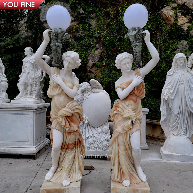 Garden Life Size Sculpted Marble Outdoor Light Statue