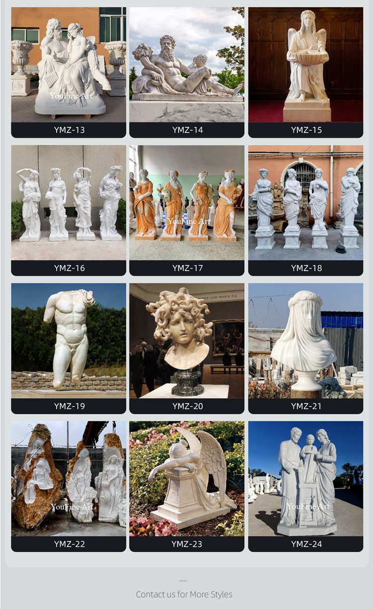 Youfan specializes in customizing various hand-carved natural marble sculptures. Our factory mainly deals in various sculptures, such as marble statues, animal statues, fountains, pavilions, religious statues, tombstones, columns, custom garden decoration sculptures, indoor and outdoor decoration, architecture, etc. We provide one-stop customization services and have exported to more than 80 countries country.