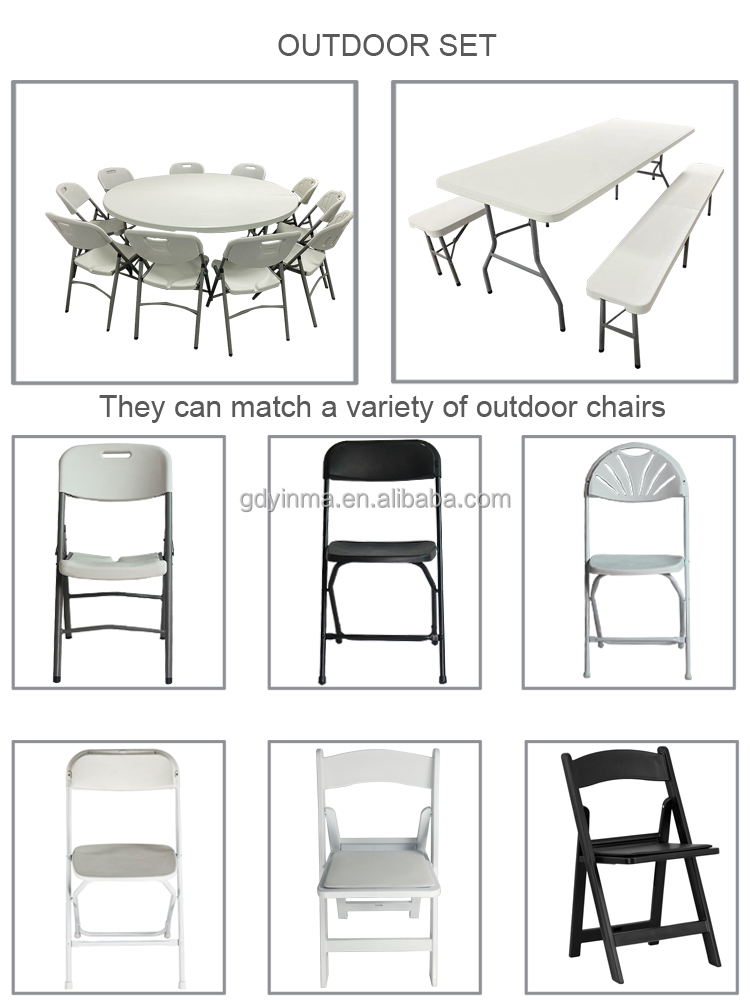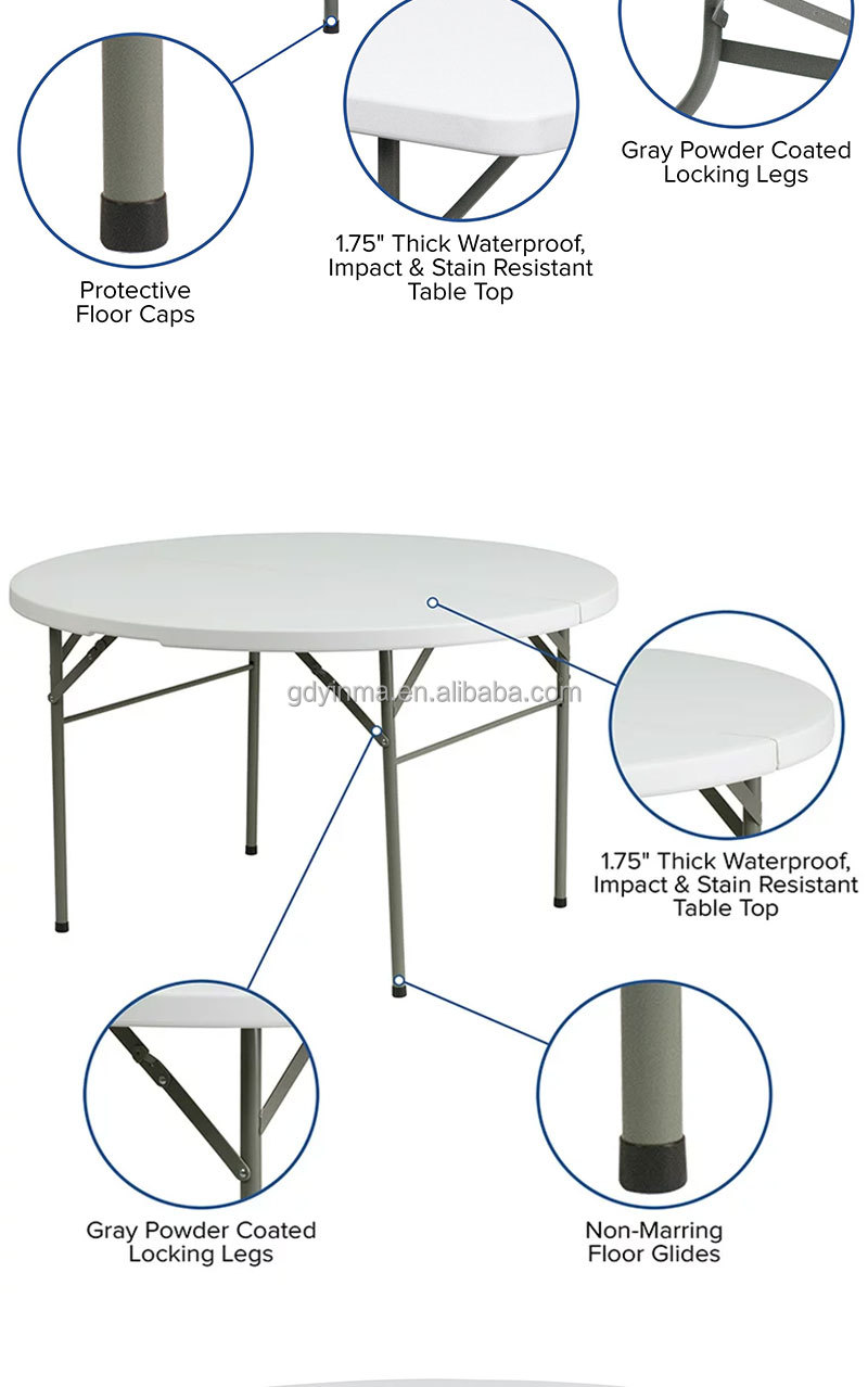 Commercial Rental Outdoor Banquet Wedding White BBQ Theme Party Camping Picnic HDPE Plastic Round Folding Table