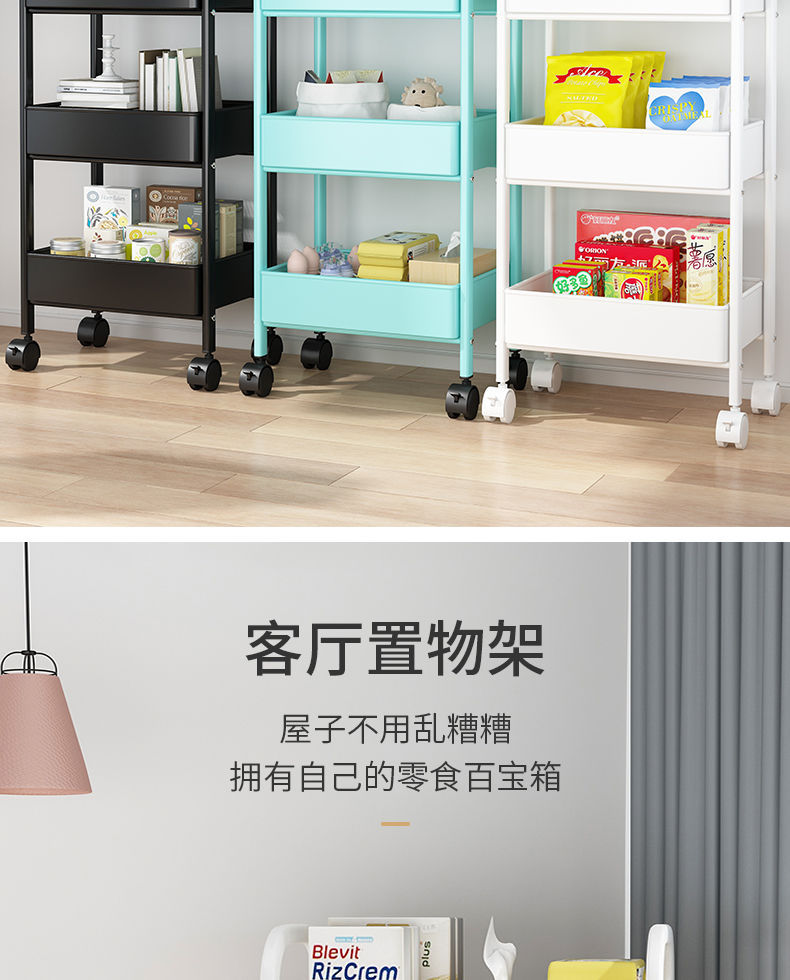 Home Storage Rack Metal High Quality Storage Rack Rotating Kitchen Living Room Trolley Fruit and Vegetable Trolley