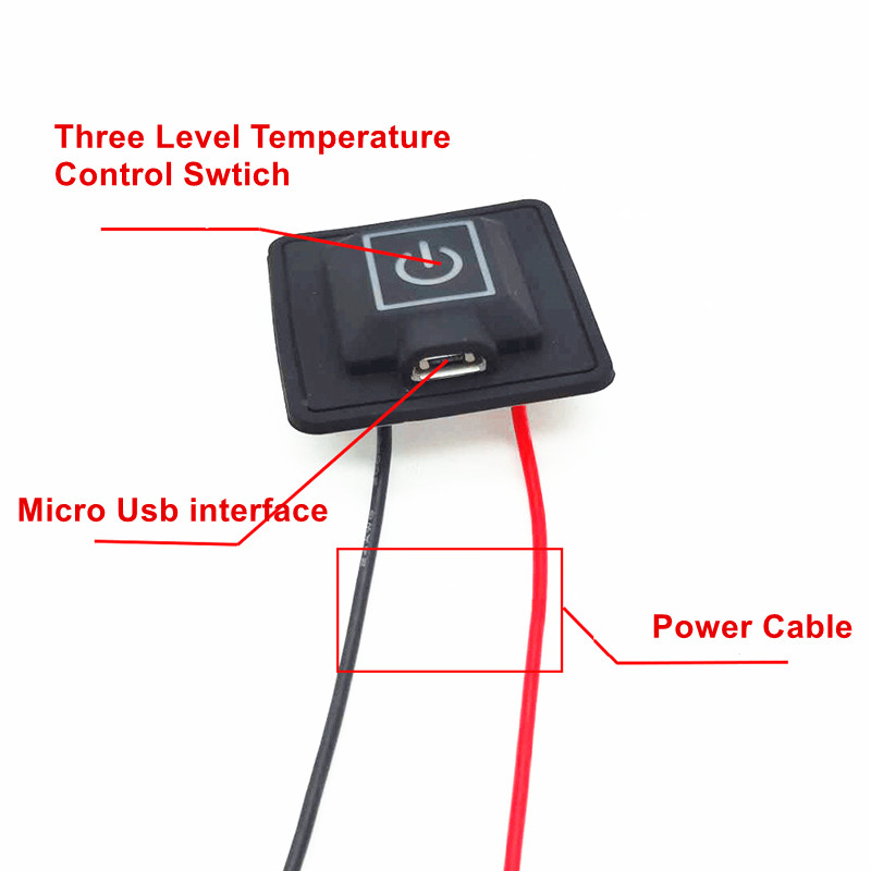 Sewing three-level waterproof Android Micro USB interface silicone temperature control switch for heating clothes and gloves