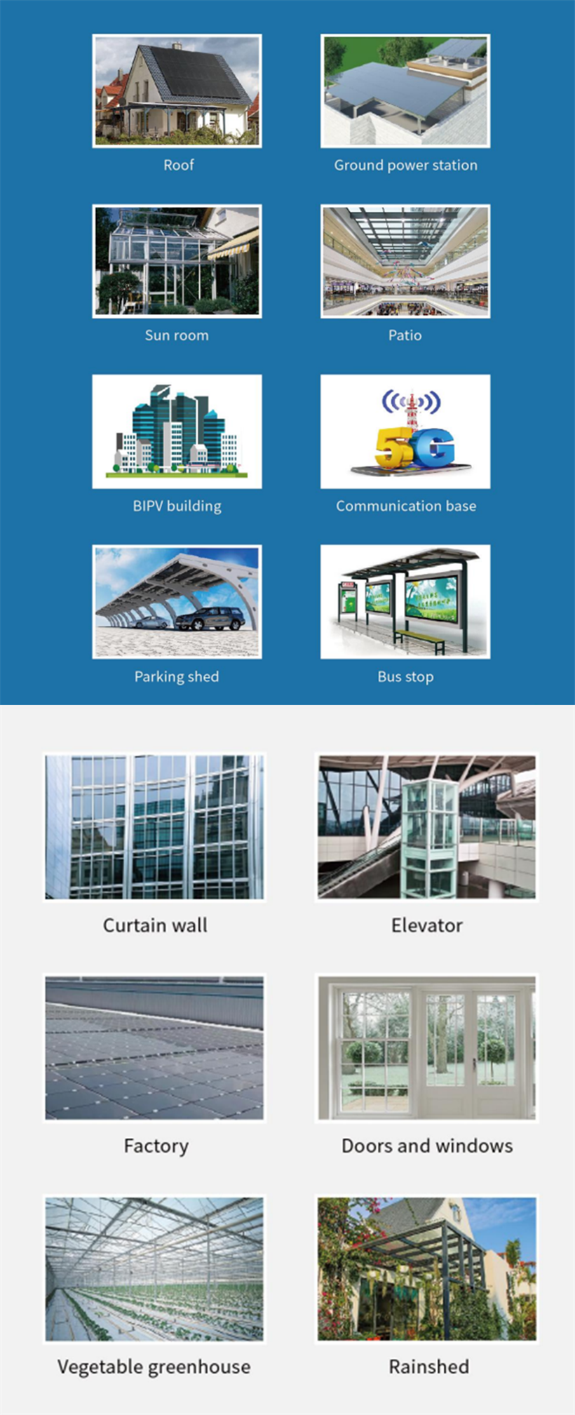 CDTE glass is a thin film solar cell based on P-type CdTe and N-type CdS. It has the characteristics of tempered glass, that is, it has high load-bearing capacity, wind resistance, cold and heat resistance, impact resistance, etc. It also has the characteristics of photovoltaic power generation components, that is, it absorbs sunlight to generate electricity through sunlight. Power transmission.