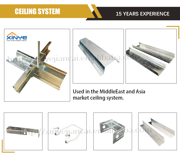 Surface treatment: paint color: white/gold/black/wood grain/red After-sales service: online technical support port: Qingdao/Lianyungang Packaging Details: 1. T-Grid / T-Bar / Ceiling Grid for gypsum board wrapped with shrink film and packed in strong carton 2. According to customer requirements...... -