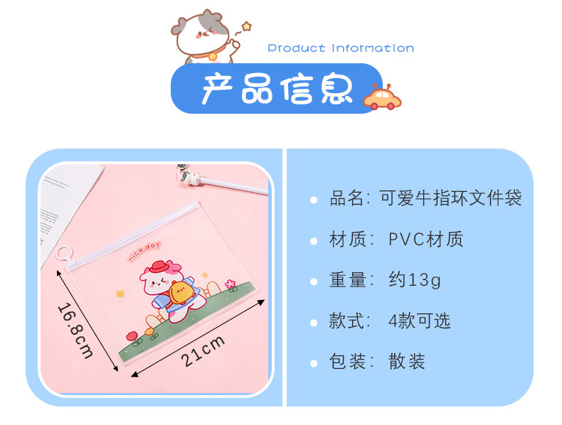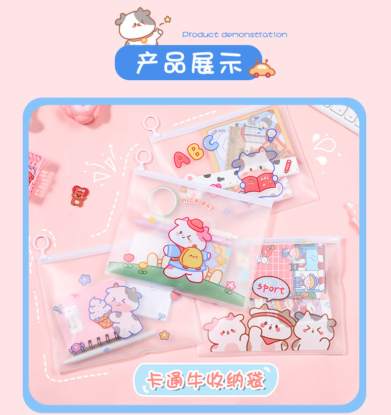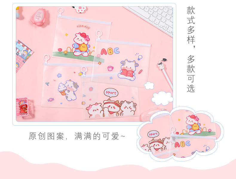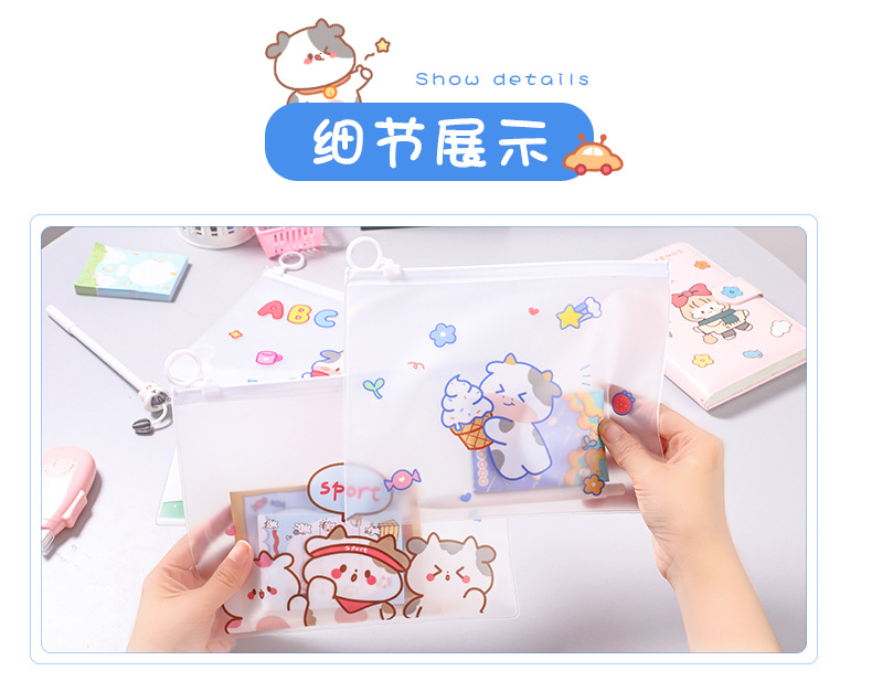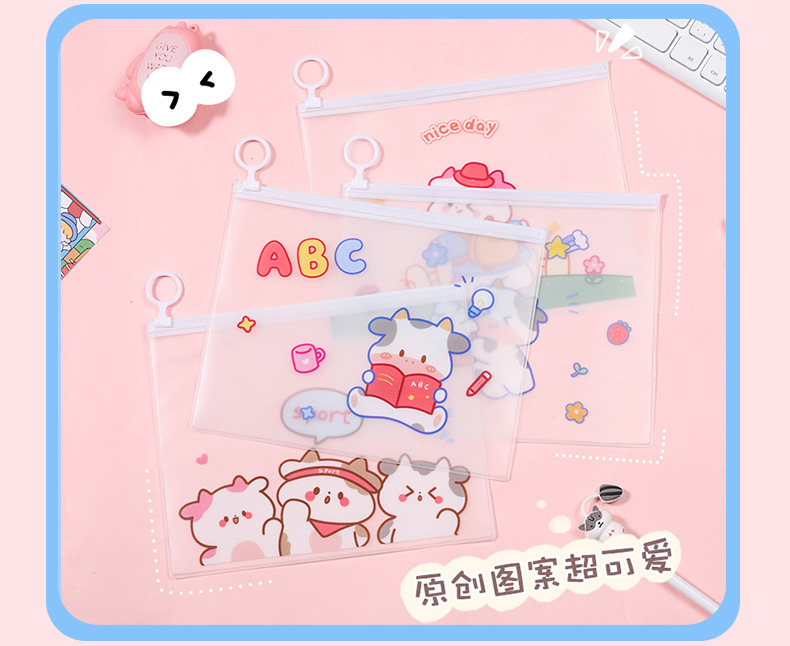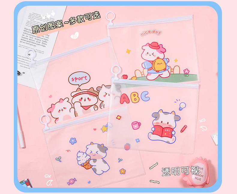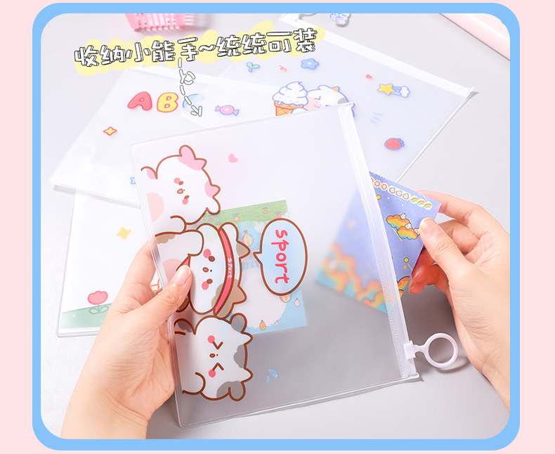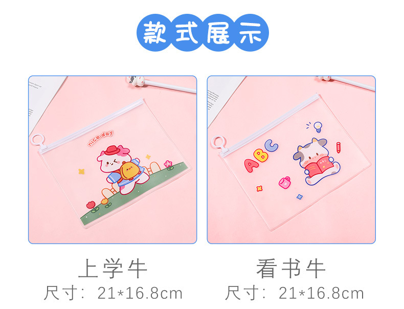 Cartoon waterproof zipper bag PVC 21 X 17 cm file pen file bag folder office school pencil bag