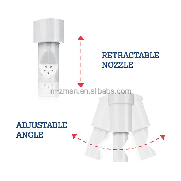 nozzle. The self-cleaning feature allows you to easily rinse the nozzle under water flow. The nozzles operate individually and one of the angles is designed for use by women