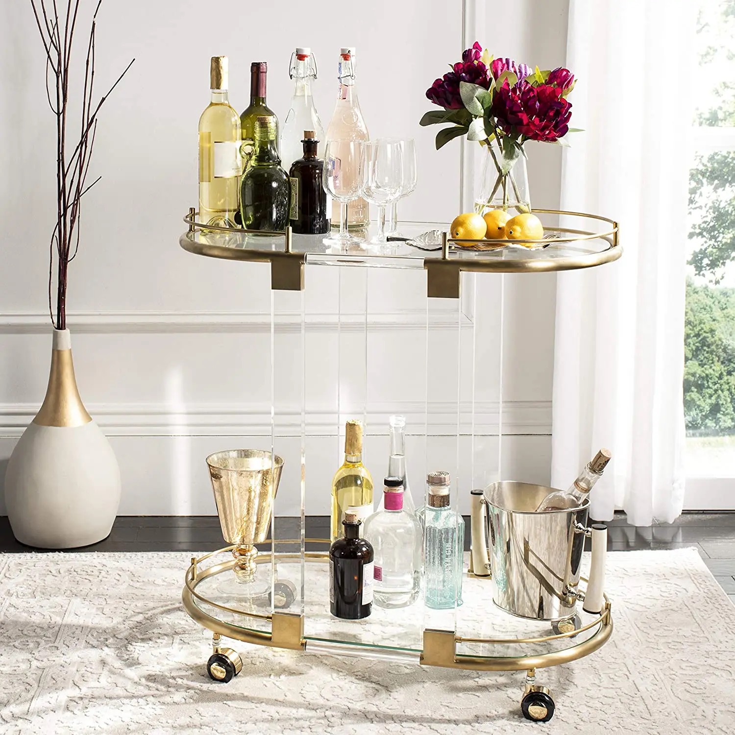 Modern Look Acrylic Serving Trolley Fancy Rolling Cart Home Custom Serving Tray