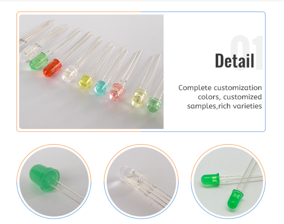 strength: 0.06W Single pack size: 20X20X16cm Lighting Solutions Services: Lighting and circuit design Viewing angle (°): 30/120 size: 5mm 8mm 10mm type: Ultra-high-flux LED Viewing angle: 30 degrees 120 degrees Lifespan (hours): 20000 Voltage: 1.8-3.4V Working hours (hours): 20000 Color rendering...... -
