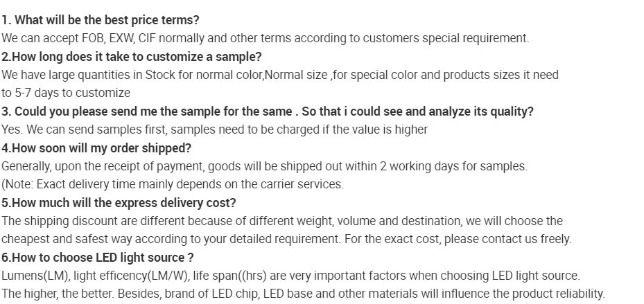 Product Description Specification thing value Input voltage(V) 1.5V Warranty period (years) 2 years type Ultra-high-flux LED Support dimmer No Lighting Solutions Services Lighting and circuit design Light efficiency (lm/w) 60 Lifespan (hours) 50000 Working hours (hours) 50000 chip material Aluminum.... -