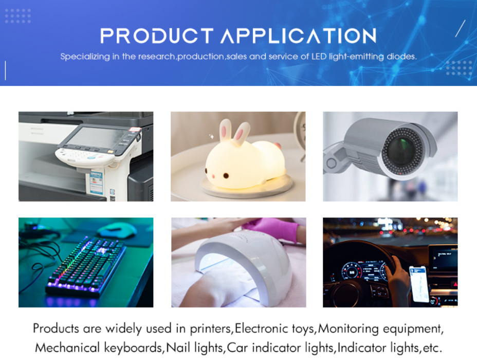 Certification: Rohs range Working hours (hours): 50000 Luminous efficacy (lm/w): 100 wavelength: 260nm 400nm 620nm 460nm 520nm 580nm light intensity: 100-160mcd Hearing: 2.0V 3.0V Power Consumption: 100 pack: 1000 Light attenuation (%): 1 Warranty (year): 2 years Color temperature (CCT): yellow......