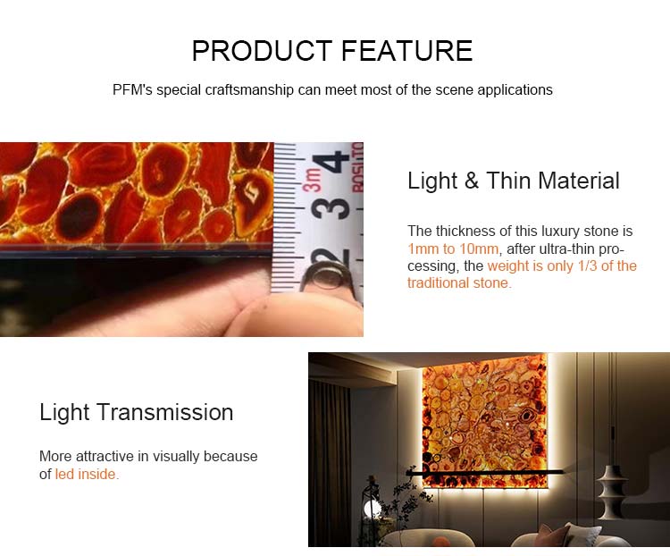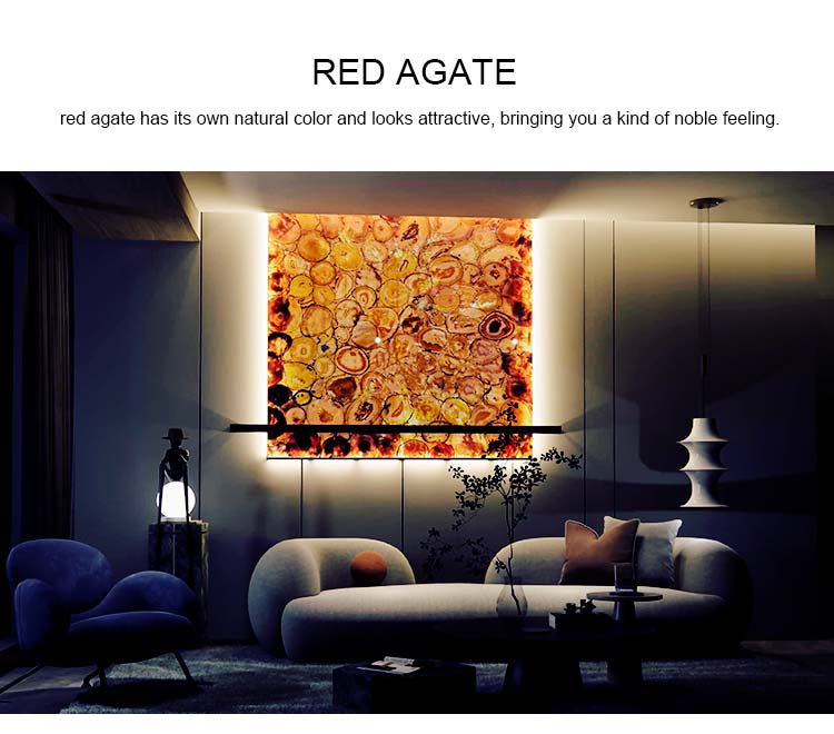 | Name | PFM high-end villa decoration luxury natural gemstone backlit red agate board background wall |
