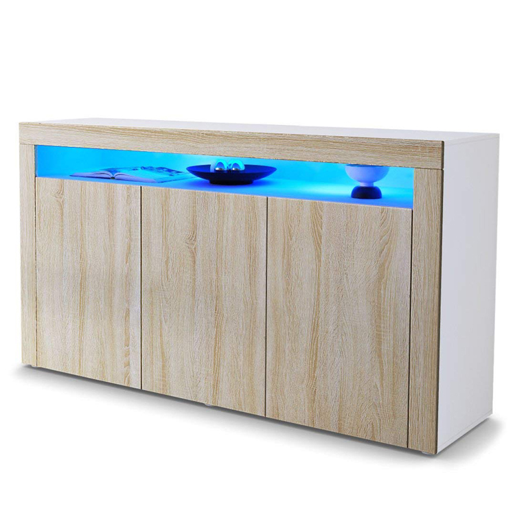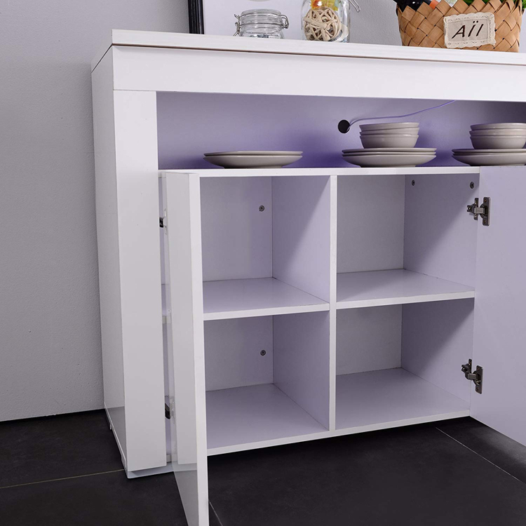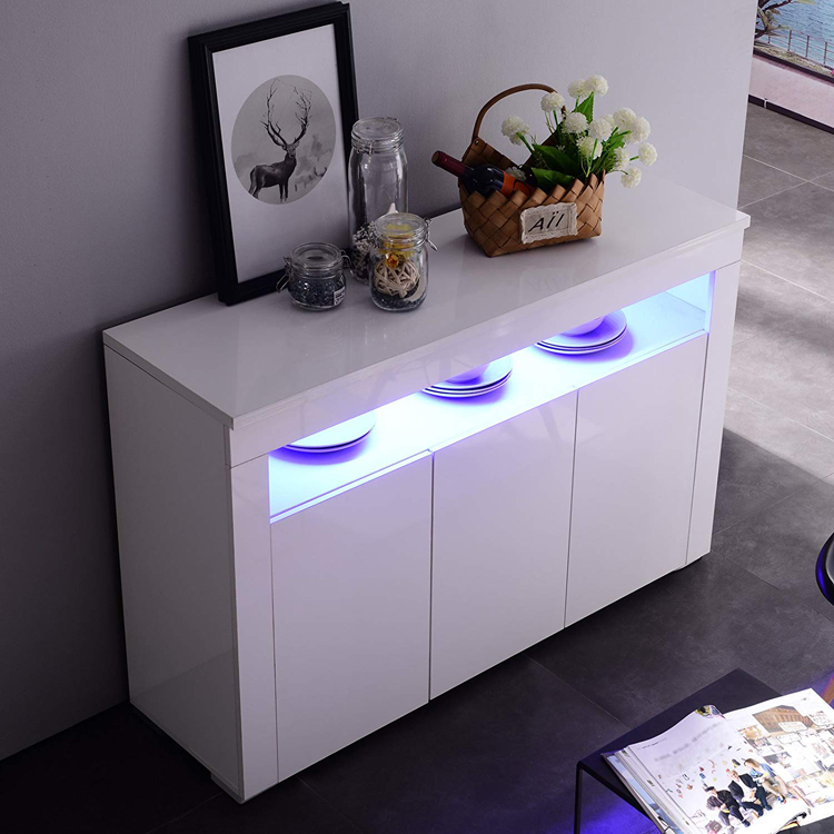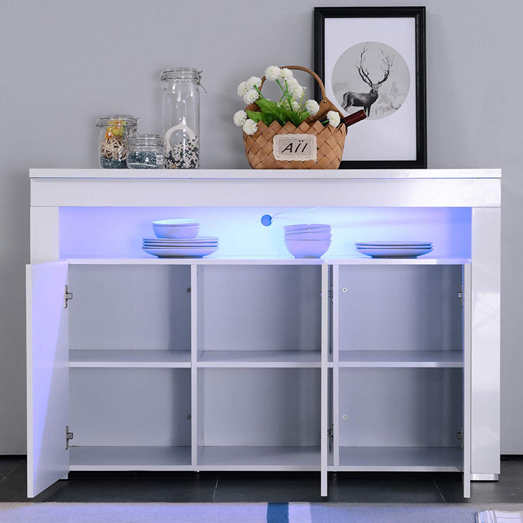 High Gloss RGB LED Lighting Sideboard Storage Cabinet for Living Room Dining Room Furniture