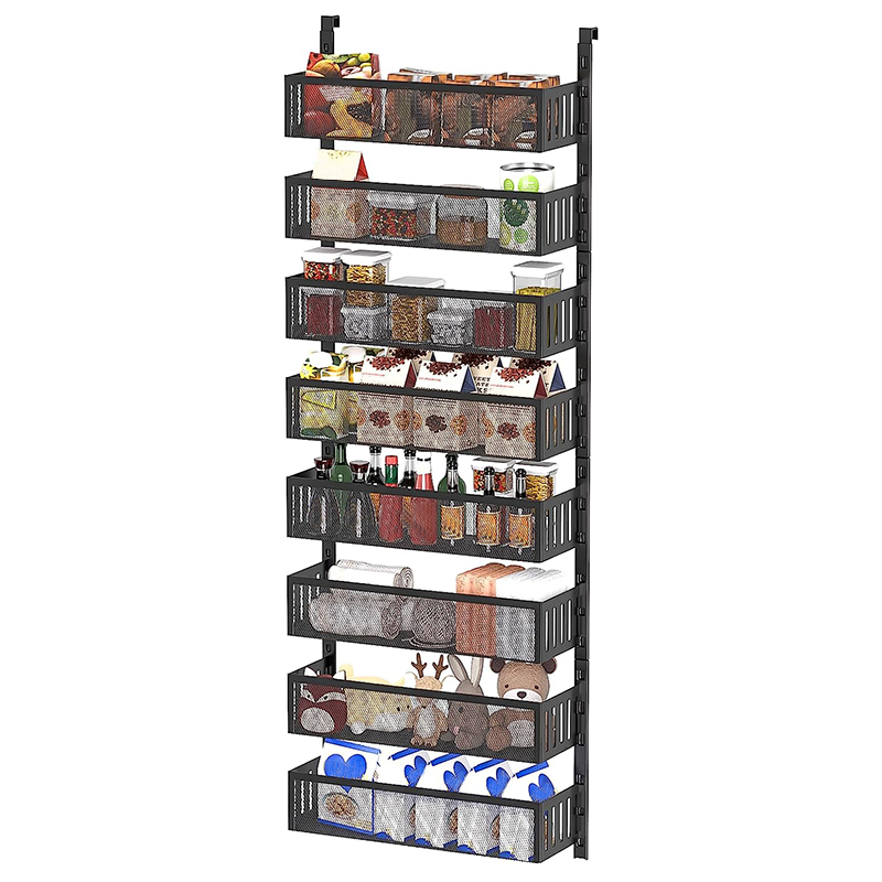 Sturdy 8-layer metal grid adjustable storage rack, height adjustable, can be hung on the door, storage rack for food storage room