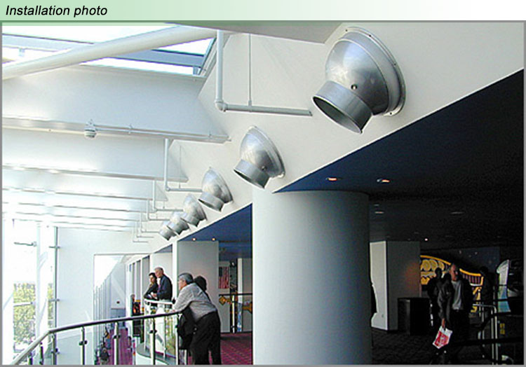 - The air supply nozzles are designed for large tall areas such as concert halls, dance halls, theaters, museums and shopping malls.