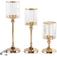 Clear Crystal Glass Candle Holder Modern Gold Metal Lantern Centerpiece Candle Holder