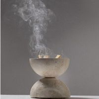 Custom Natural Beige Travertine Incense Holder Marble Incense Burner Home Decoration Religious Round Ball Incense Holder